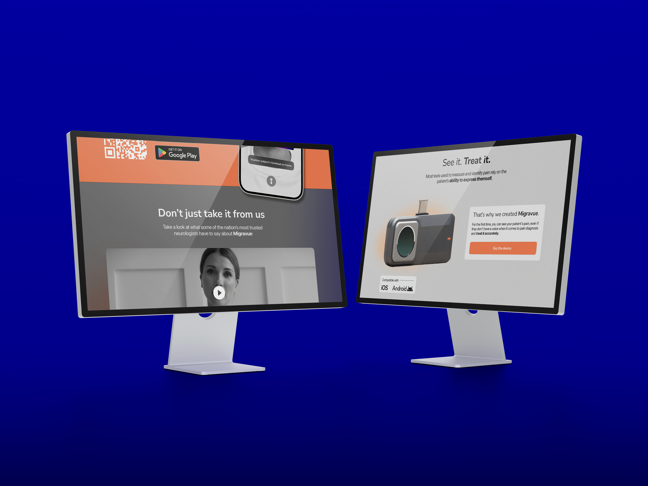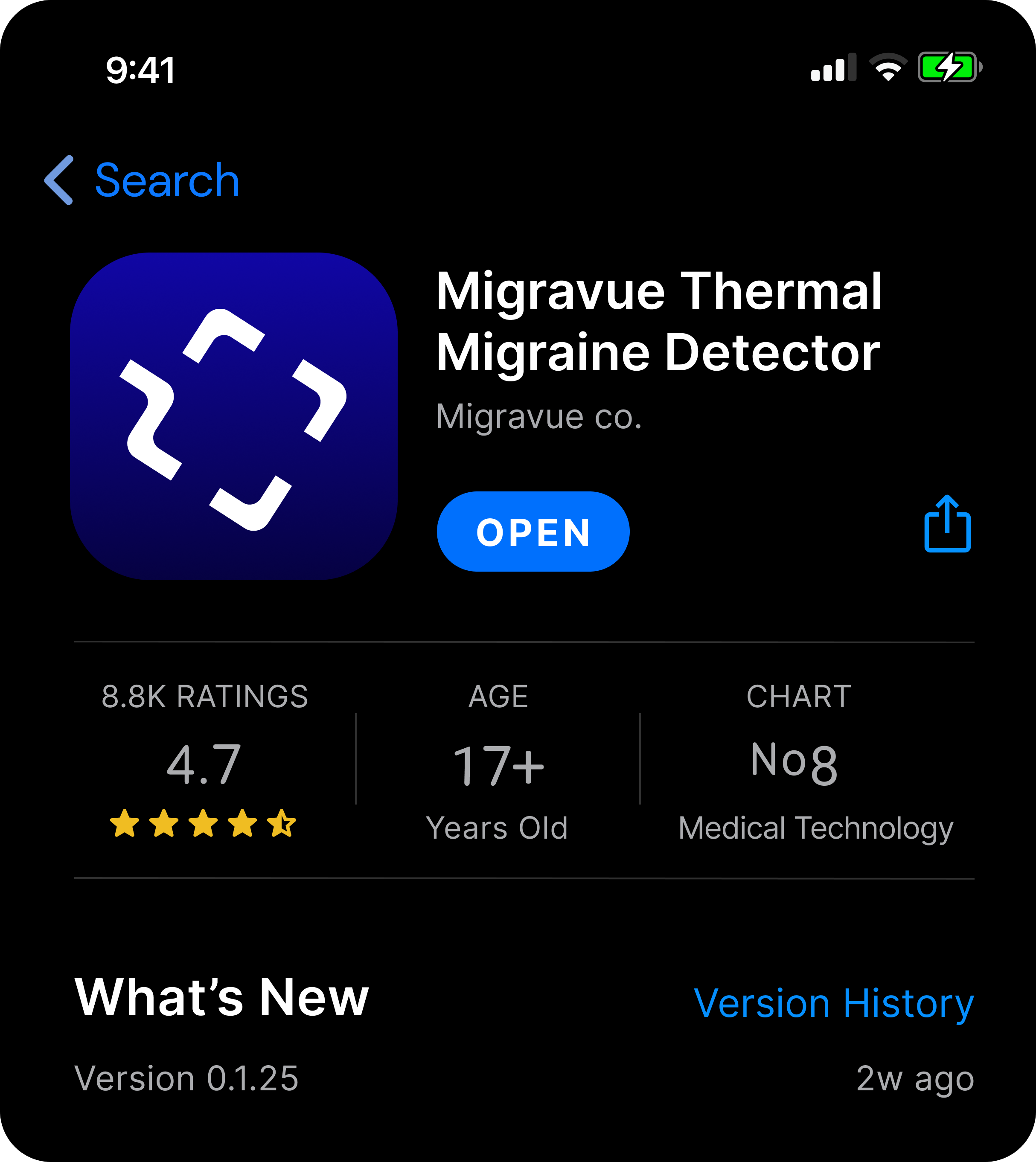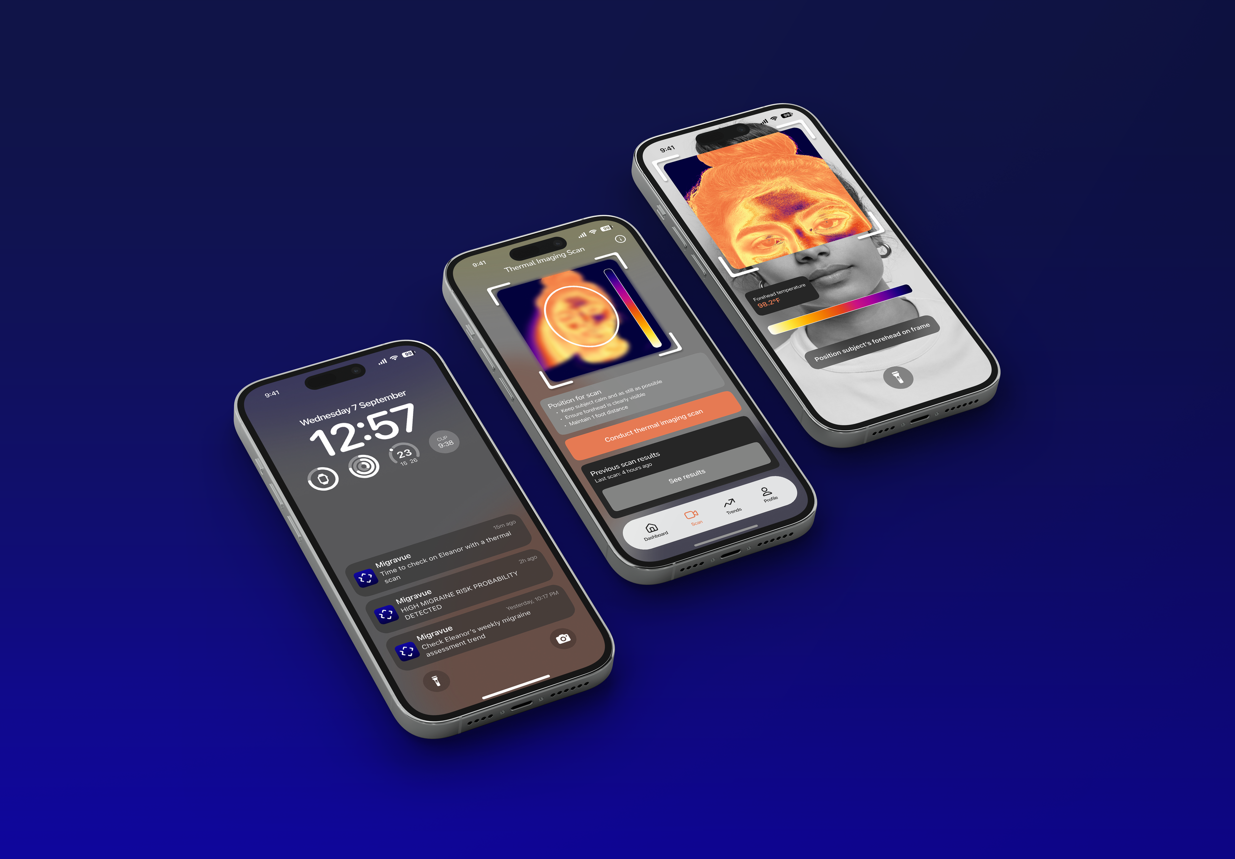 Migravue is a migraine-measurement app that uses thermal imaging to detect heat patterns on the surface of the head associated with migraine activity. The app provides an objective way to identify and locate pain in non-verbal autistic individuals, allowing caregivers and medical professionals to recognize symptoms earlier and make informed treatment decisions for patients whose pain is often unnoticed.